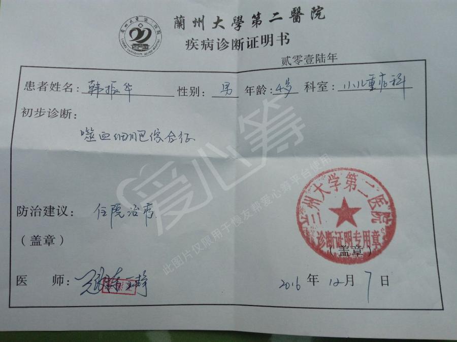 通過(guò)前期檢查治療早已難以維持每日的高昂的費(fèi)用!災(zāi)禍讓樸實(shí)歡樂(lè)的家庭無(wú)力承擔(dān)。而且在三個(gè)月前小兒子剛重病痊愈,本來(lái)不多的積蓄收入還要面對(duì)如此高昂的后期治療費(fèi),現(xiàn)在小振華生命又危在旦夕,急需廣大朋友援手相助獻(xiàn)出愛(ài)心。