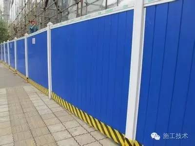 1.工地圍墻:用硬質(zhì)材料或用磚砌體封閉(市區(qū)主要路段墻高2.5m,一般路段墻高1.8m。)墻面抹灰并刷白,做到堅固、平穩(wěn)、整潔、美觀。磚砌的圍擋要有墻帽,墻面要有宣傳標語?繅μ幉粶识逊挪牧匣蚰嗤。有條件的可使用彩色壓形鋼板。