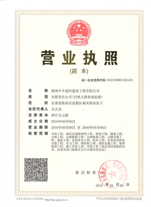 隴南中豐建科建設(shè)工程有限公司
