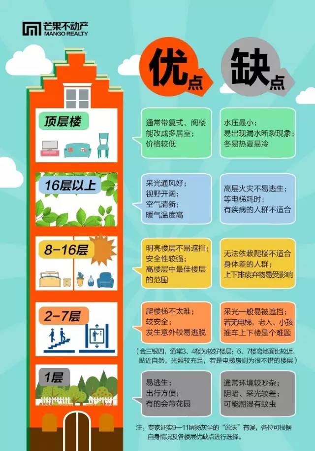 其實(shí)數(shù)字本身沒有什么特殊含義,卻成了疑神辟邪的犧牲品,實(shí)在令小編哭笑不得。除開這些,在樓層的高低選擇上很多人也有不同的看法。有人說高的空氣好、日照多、風(fēng)景佳;有人言低的接地氣、出行快、更安全,讓我們一起來看看高低樓層各有哪些利弊。