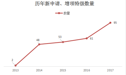 2014-2016特級資質(zhì)通過數(shù)量較為穩(wěn)定,2017年陡增。