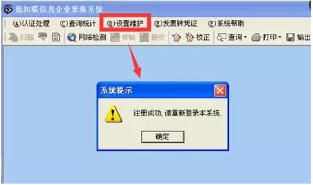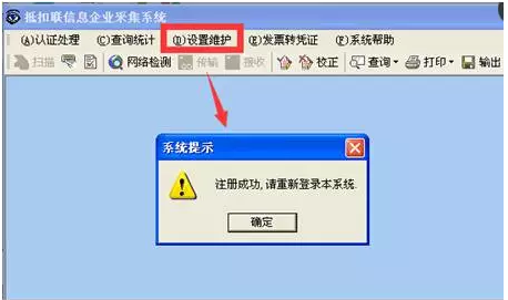 第三步:申請成功后,需點擊設(shè)置維護\在線注冊,提示“注冊成功,請重新登錄本系統(tǒng)”,點擊“確定”,退出網(wǎng)上認(rèn)證系統(tǒng),重新登錄即可。如下圖所示: