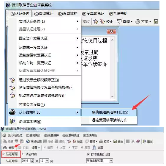 答:進入網(wǎng)上認(rèn)證系統(tǒng),點擊認(rèn)證處理--認(rèn)證結(jié)果打印--增值稅結(jié)果清單打印,在彈出界面點連接登錄--確定,登錄成功后,選擇“認(rèn)證月份”,在“打印前進行比對”打鉤,點查詢--打印即可。