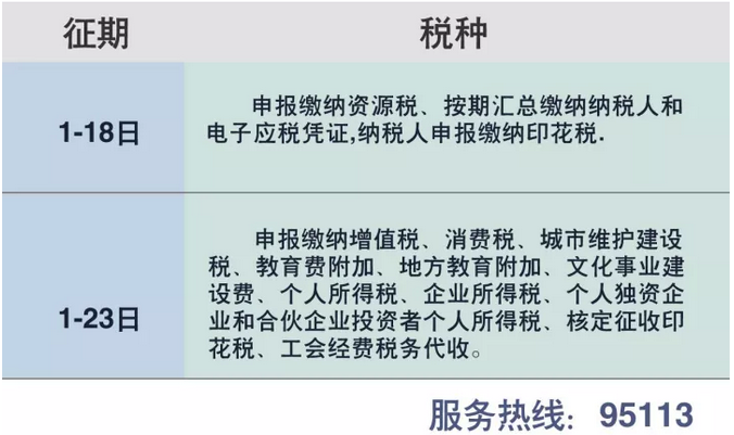 (征期內(nèi)1至8日為節(jié)假日,順延8天至18日)