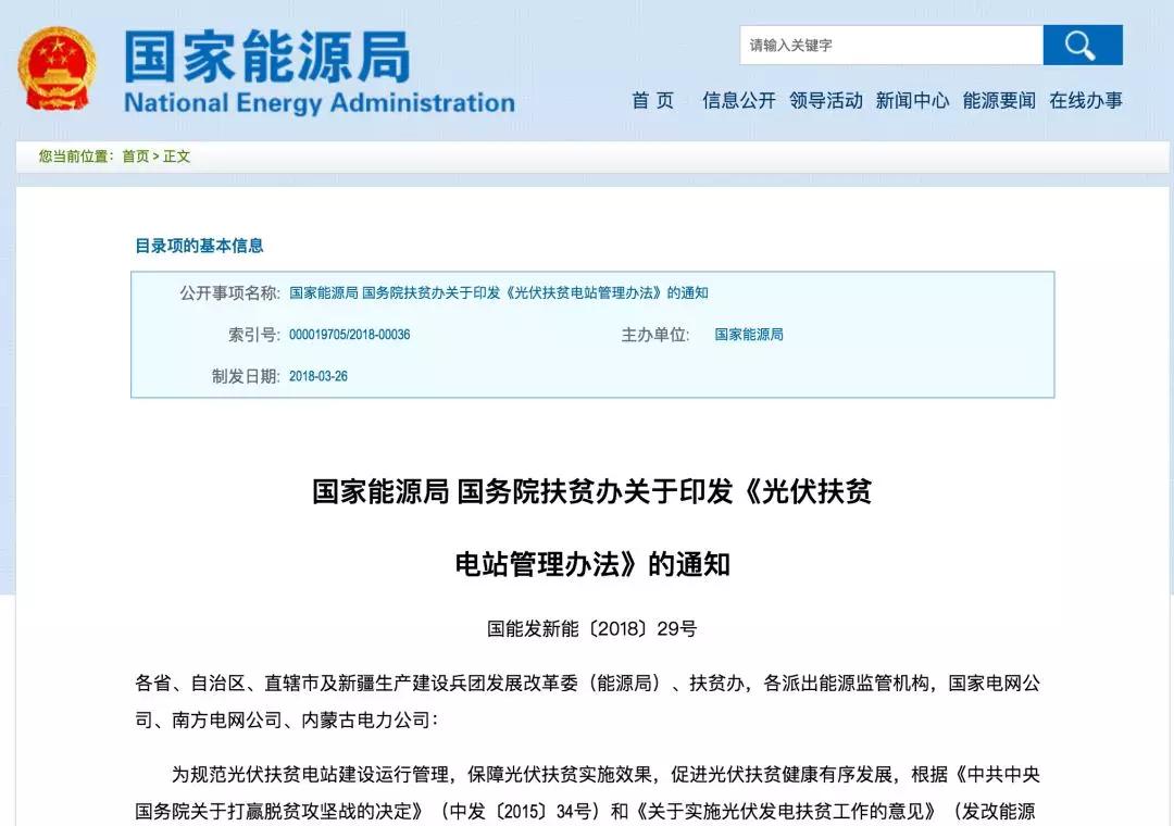 為規(guī)范光伏扶貧電站建設運行管理,保障光伏扶貧實施效果,促進光伏扶貧健康有序發(fā)展,根據(jù)《中共中央國務院關(guān)于打贏脫貧攻堅戰(zhàn)的決定》(中發(fā)〔2015〕34號)和《關(guān)于實施光伏發(fā)電扶貧工作的意見》(發(fā)改能源〔2016〕621號),國家能源局、國務院扶貧辦制定了《光伏扶貧電站管理辦法》,現(xiàn)印發(fā)你們,請按要求認真貫徹落實。