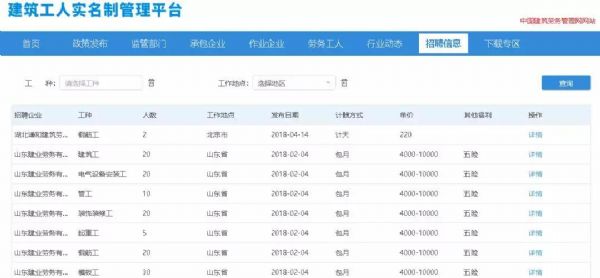 除此之外,還有一個亮點,就是建筑勞務(wù)“招聘信息”板塊。有勞務(wù)需求的企業(yè),可以在此發(fā)布相關(guān)需求及薪資待遇。
