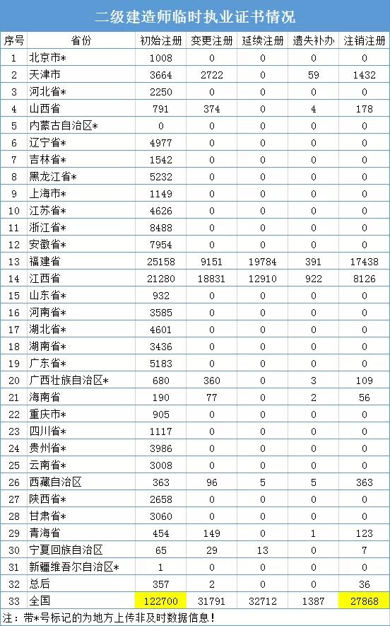 據(jù)中國建造師網(wǎng)站信息,截止至8月2日,全國目前臨時二級建造師12萬左右。數(shù)量最多的是福建省,有2.5萬左右。