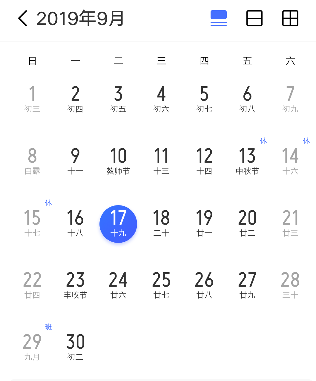 注:9月29日(星期日)、10月12日(星期六)正常上班