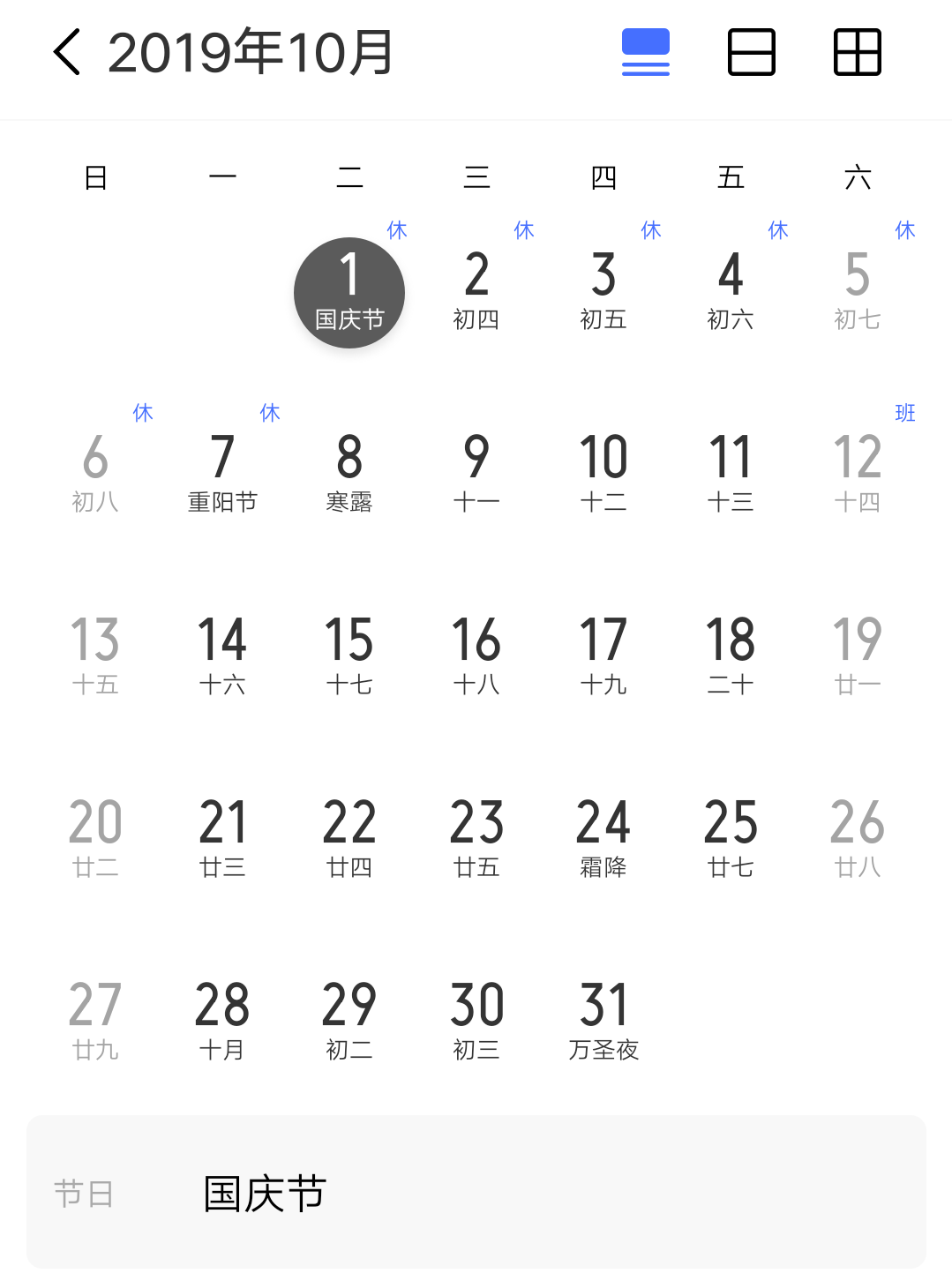 1、放假時(shí)間:2019年10月1日至10月7日(星期二--星期一)