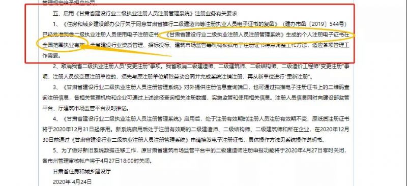 最后,我替甘肅住建廳總結(jié)一下:之前的紙質(zhì)二建注冊證書能全國執(zhí)業(yè),現(xiàn)在的二建電子注冊證書也能全國執(zhí)業(yè)!
