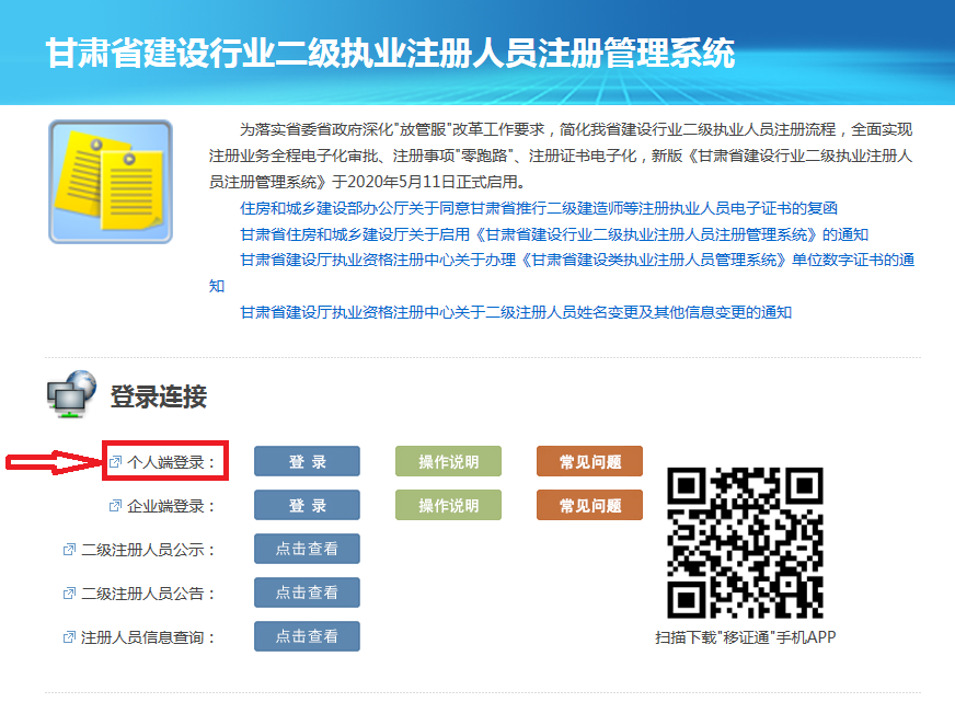 第二步:電腦登錄甘肅省建設(shè)廳執(zhí)業(yè)資格注冊中心網(wǎng)站https://www.gsszczx.com/(推薦360極速瀏覽器)計入如下圖所示操作: