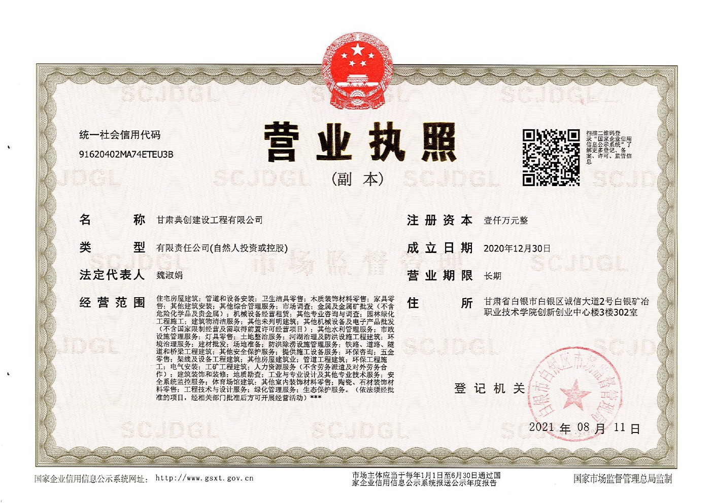 甘肅典創(chuàng)建設(shè)工程有限公司營(yíng)業(yè)證書