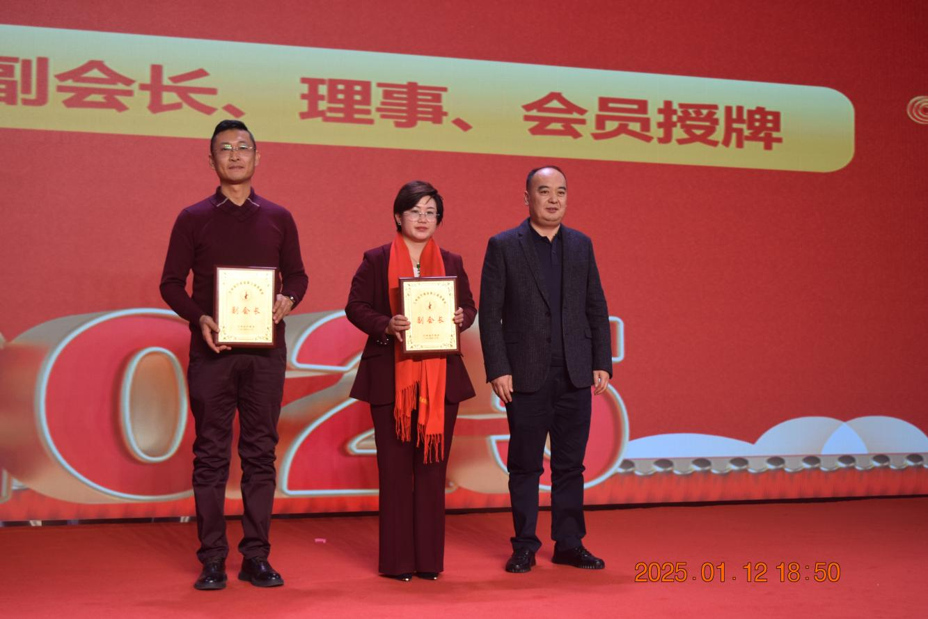 會上,為新增選副會長、理事和新入會的會員頒授證書;向2024年以商會為平臺,通過會寧縣教育發(fā)展促進(jìn)會向家鄉(xiāng)助教興學(xué)捐資的企業(yè)頒發(fā)“助教興學(xué)奉獻(xiàn)獎”;向捐資支持會寧安萬劇團(tuán)來蘭義演的會員企業(yè)頒發(fā)“愛心奉獻(xiàn)獎”。