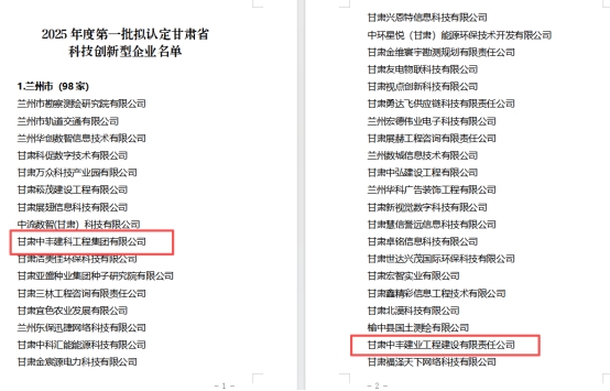 熱烈祝賀中豐建科2025年通過一家高新技術(shù)企業(yè),兩家甘肅省科技創(chuàng)新企業(yè)